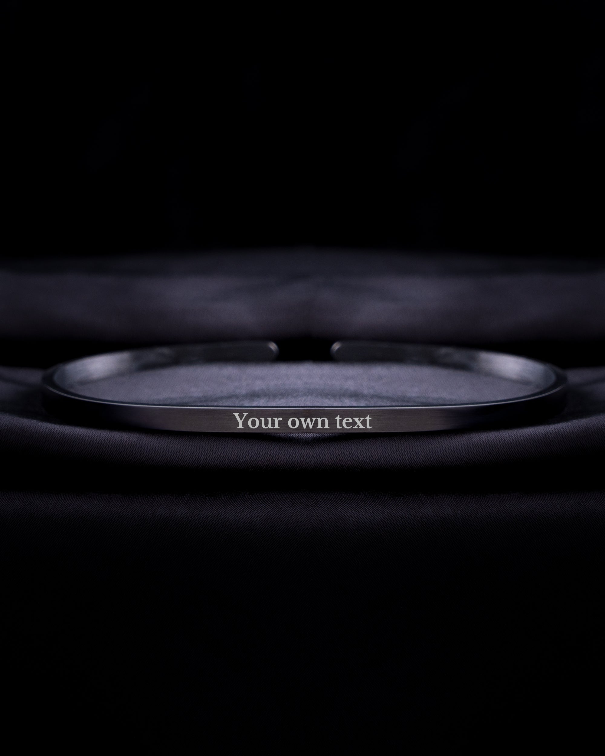 Minimalist bracelet bangle made of surgical steel. Create a unique gift personalized with text that symbolizes your bond.